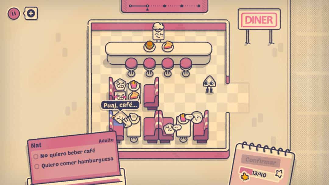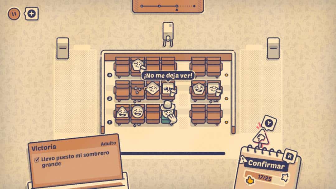 Lo bueno de Is this seat taken? es que nos ha llegado traducido al castellano, por lo que podemos leer la pequeña historia que posee el título, además de hacer más fácil el poder descubrir qué es lo que desea cada personaje a la hora de estar sentado. Además, cuenta con la posibilidad de usar la pantalla táctil de ambas Nintendo Switch, por lo que podemos jugarlo sin necesidad de usar los mandos, pero con ellos podemos colocar a los personajes con más precisión que si lo hacemos con los dedos.