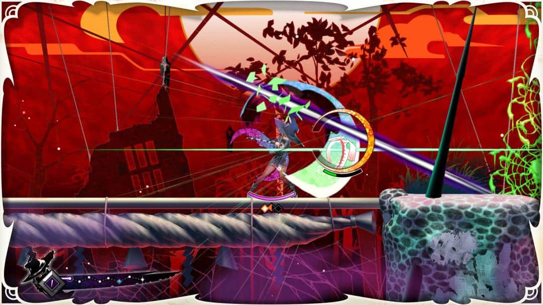 Y es que, en Switch 2, Majogami es uno de esos juegos que se disfrutan a 120 fps. Y esa fluidez, junto a lo sólido de su control de combate, es lo que realmente hace que Majogami sobresalga de la medianía. Además de un golpe y un salto estándar, tenemos una habilidad que nos permite lanzarnos hacia un enemigo para cortarlo en diferentes direcciones (algunos enemigos piden una dirección concreta) y, en ocasiones, podemos encadenar muchos de estos golpes con distintos enemigos. Eso sí, para el mismo o para varios que estén separados, necesitamos primero haber cargado un medidor que se llena a base de golpes normales.