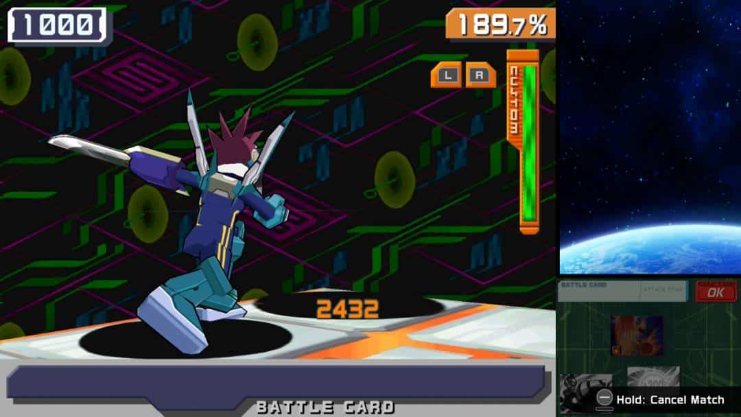 En cuanto a su propuesta jugable, Mega Man Star Force sigue girando en torno a ese sistema híbrido que mezcla acción en tiempo real con decisiones tácticas a tomar casi al momento. Los combates se desarrollan en un espacio delimitado donde nos movemos lateralmente mientras disparamos y, en momentos concretos, seleccionamos cartas que determinan ataques y habilidades. Es un sistema que, pese a los años, conserva buena parte de su atractivo, sobre todo por su ritmo y por la forma en la que obliga a alternar entre reflejos y planificación.