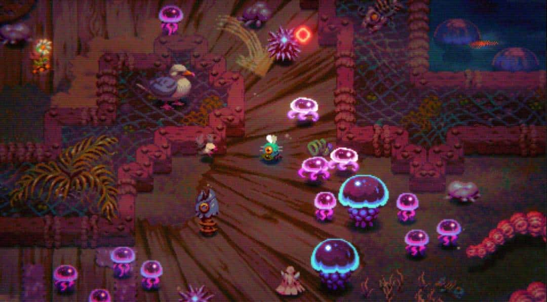 El apartado artístico de Morsels posiblemente sea lo más llamativo de la propuesta, ya que a nivel visual tiene un toque que combina lo psicodélico y la estética cartoon de los años 90’s, inyectando a cosas a priori desagradables un colorido y una apariencia que las hace ver cómicas e infantiles.