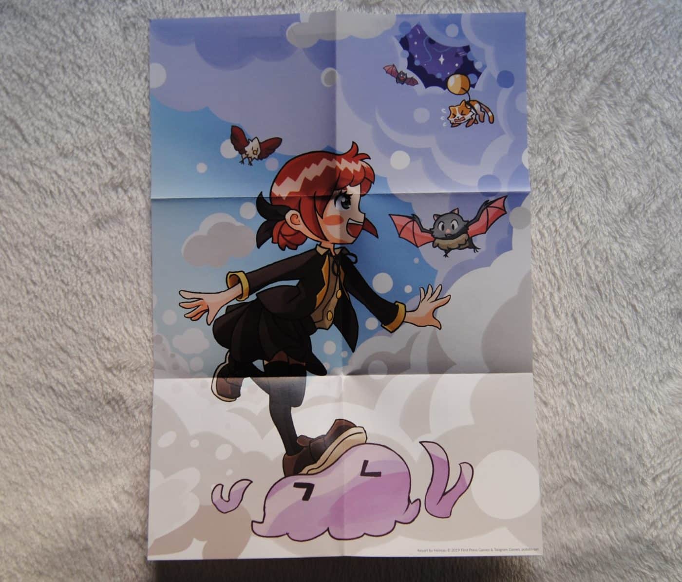 Además de esto, se incluye un pequeño folleto de color rojo en el que se ven los títulos de la compañía (lo tenéis en la imagen de la portada de este artículo) y un poster a doble cara de su lanzamiento de Game Boy Color, Tobu Tobu Girl.