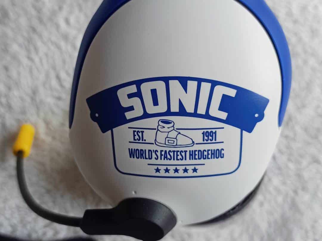 Todo el diseño de los auriculares tiene en mente los colores de Sonic, además de detalles negros en las almohadillas para las orejas (donde podemos ver un dibujo de la cara de Sonic) y la parte superior de la cabeza. Por eso vemos azul, blanco, y hasta el rojo y amarillo de las zapatillas.