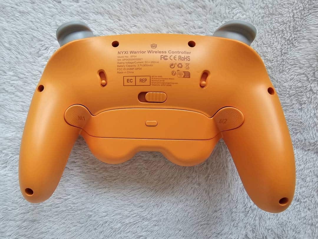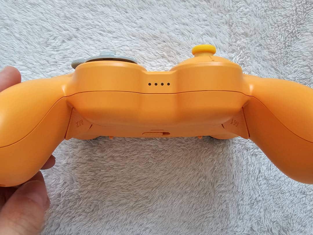 Si seguimos en la parte trasera, encontramos los clásicos 2 botones programables en los mandos de terceros, a los cuales podemos asignarles cualquier botón. Sin embargo, para los que no quieran usarlos por accidente o para gente que participe en torneos o similares, esta zona de botones puede quitarse y colocar una zona plana.
